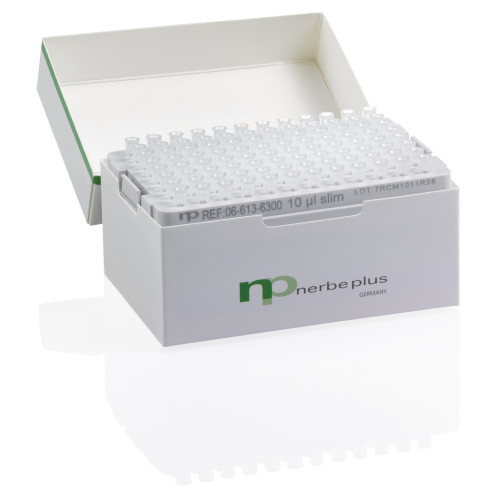 Varfuri de pipeta NERBE PLUS premium surface, 0,1-10µl, super slim, 96 pcs/EcoRack, transparent, moul. rings, np premium bio, sterile R, CE/IVD, pachet x 10 EcoRack-uri